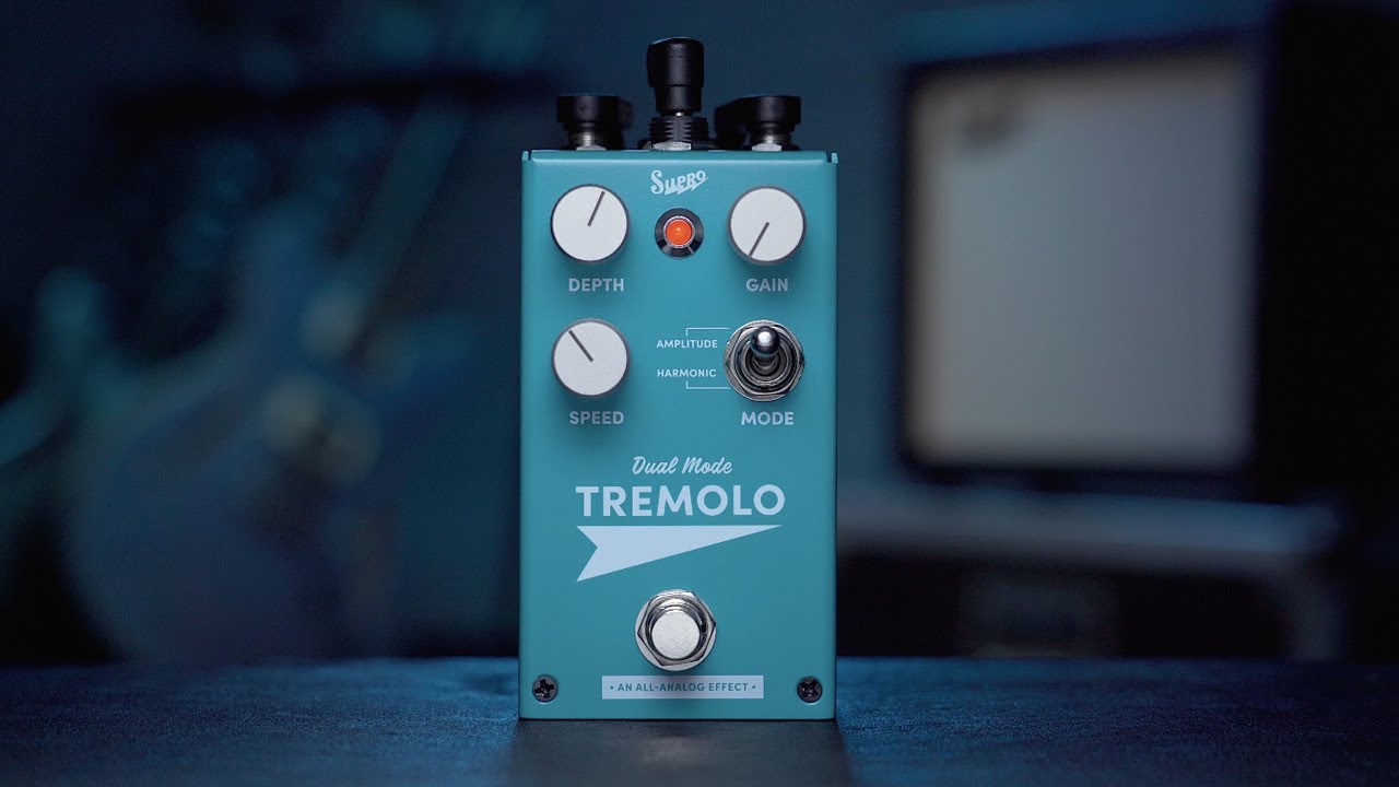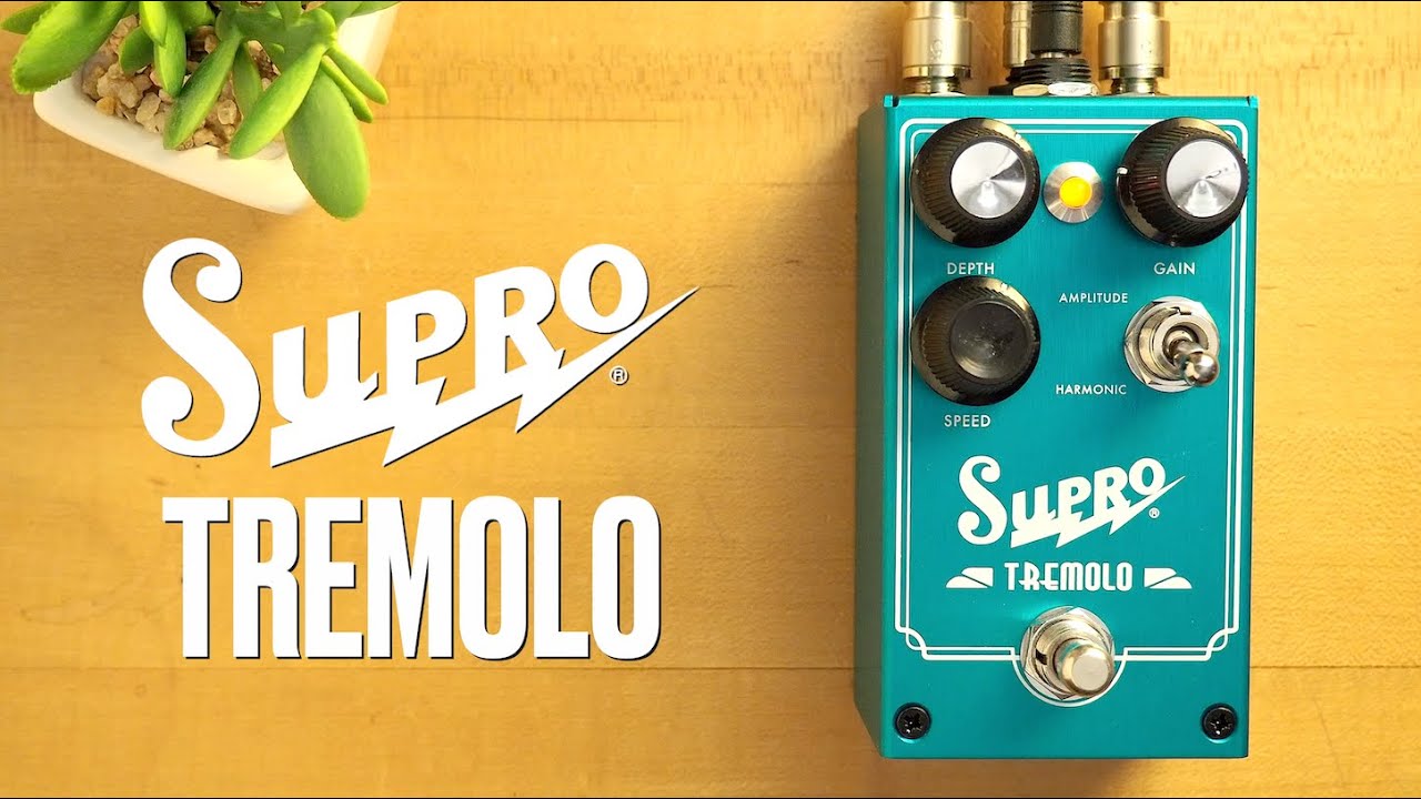 La marque américaine Supro a mis le nez dans les pédale d’effets il y a quelques années. Après avoir présenté une fuzz, un boost et un overdrive, le fabricant a lancé sa pédale de trémolo dénommée Tremolo. Cette dernière reprend les sons de trémolo de deux amplis à lampes des années 60 : un ampli Supro et un ampli Fender Brownface. L’ampli Supro est connu pour son trémolo d’amplitude, un trémolo obtenu par le bias en modulant les lampes de puissance. Les amplis Fender Brownface sont célèbres pour leur trémolo harmonique aux sonorités assez psychédéliques. Grâce au sélecteur Amplitude/Harmonic, la Tremolo de Supro donne accès à ces deux sons vintage mythiques.