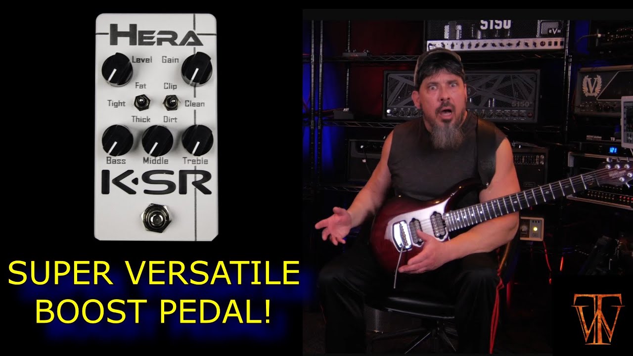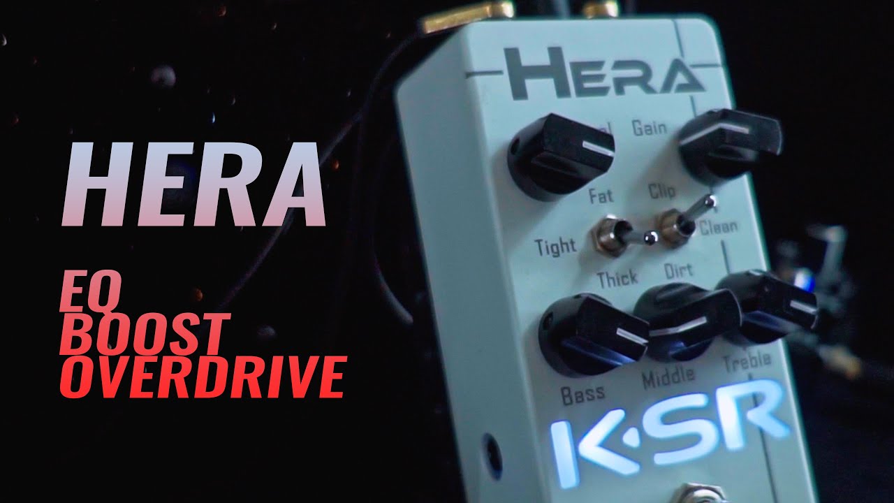 Non, la Hera ne vous permettra pas de jouer de la techno des années 90 sur fond de chorale chrétienne. Cette pédale est un Boost/EQ conçu pour soit renforcer votre ampli, soit l'adoucir en offrant un contrôle étendu du spectre de votre guitare. Lorsqu'elle est poussée dans son gain, la Hera commence à produire son propre overdrive, et un toggle switch permet de choisir entre les modes de clipping Clean, Dirt et Clip. Un autre toggle permet de gérer les basses fréquences pour obtenir des effets Tight, Fat ou Thick. Contrairement à la Eros qui s’adapte plus à un jeu d’accordage bas, la Hera tient parfaitement ses fonctions sur des accordages standards avec des basses plus naturelles.