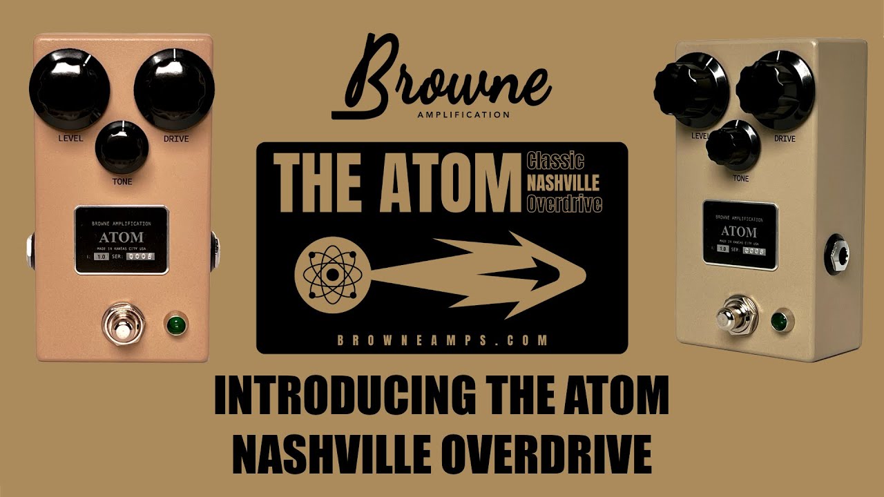 La Nobels ODR-1, au même titre que la TS-808, connaît un succès quasi ininterrompu depuis sa sortie. Elle a été adoptée par de nombreux guitaristes de session de Nashville, connus pour être très exigeants avec leur son de guitare. Browne Amplification est également fan de ce circuit particulier mais souhaitait le corriger un peu. La marque a donc conçu The Atom Nashville Overdrive. Bien qu’elle soit fortement inspirée de l’ODR-1, il ne s’agit pas d’un simple clone. Browne Amplification a abaissé le niveau de gain de façon à ce que la pédale soit plus utilisable sur toute la course du potard de Gain. L’égalisation a été légèrement ajustée pour générer plus de médiums et plus de basses. La marque a été très vigilante sur ce point, et a tenu à intégrer la juste quantité de basses, assez pour gonfler le son, mais assez peu pour que le son ne bave pas.