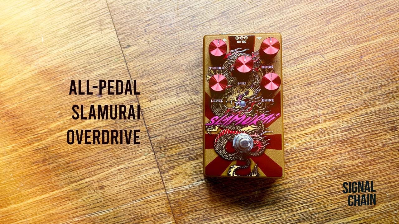 La Slamurai est une pédale d’overdrive de type Amp in a Box. Elle développe des sonorités à la fois chaleureuses et très dynamiques, qui se rapprochent de celles d’un ampli à lampes. Cependant, AllPedal a souhaité aller plus loin que le simple overdrive. La Slamurai est extrêmement polyvalente, notamment grâce à sa puissante égalisation à 3 bandes et à la course très longue de son potard de gain.