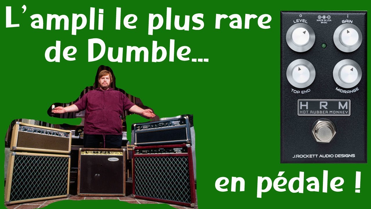 La plupart d’entre nous comptent donc sur les pédales d’overdrive pour retrouver ce son, et dans le domaine l’une des meilleures références est la J. Rockett Dude. Le très beau grain de cette péale est d’autant plus réaliste qu’il a été copié sur une vraie tête Dumble, l’exemplaire qui appartenait à Keith Urban qui l’a ensuite vendu à Mark Tremonti. Face au succès de la Dude, J. Rockett a ensuite conçu la HRM. HRM, pour Hot Rubber Monkey (mais surtout pour “Hot Rodded Marshall” de façon officieuse), est le nom d’une modification apportée par Dumble à certaines têtes Overdrive Special qui rajoute un étage d’EQ post-gain pour plus de saturation et un grain plus britannique. Pour la première HRM, J. Rockett est tout simplement reparti de la Dude en rajoutant du gain et de l’épaisseur.