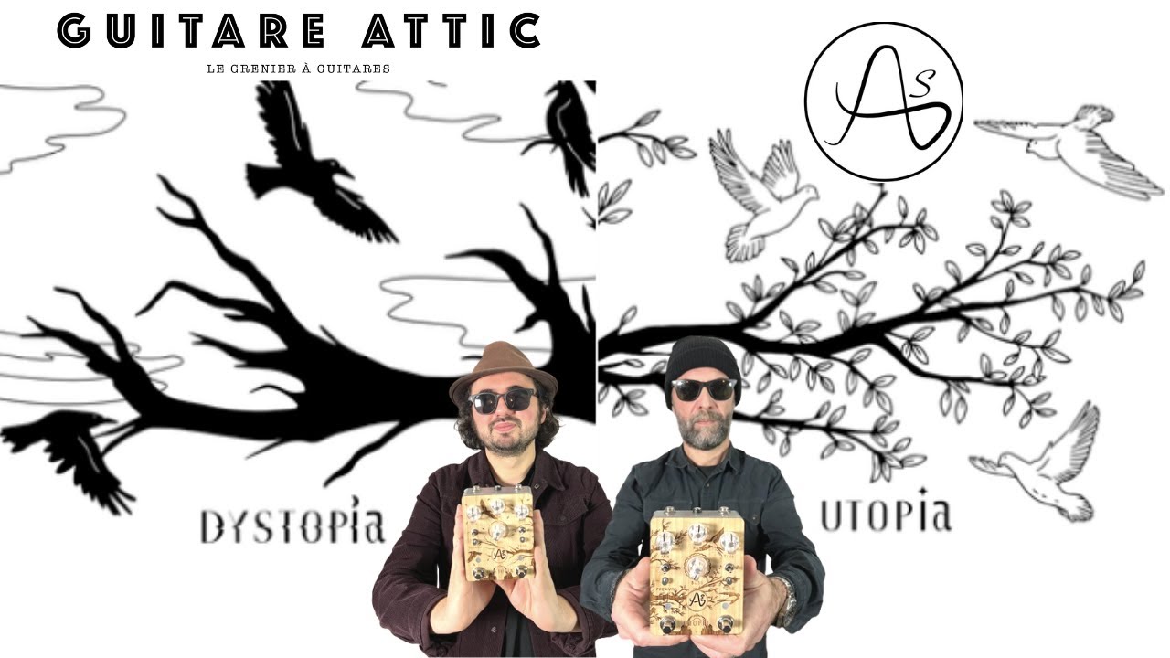 Voici donc la Anasounds Dystopia, qui vient se placer en négatif de l’Utopia (de la même manière qu’une dystopie est une utopie négative, l’anticipation d’un futur sombre et dysfonctionnel) et représente le “evil twin” du delay best-seller de la marque boutique française. Bien sûr, comme tout evil twin qui se respecte, il y a quand même le côté twin, c’est-à-dire que la Dystopia est très proche de l’Utopia, au point qu’on pourrait les confondre si l’on ne regardait pas de plus près les ombres inquiétantes se dessinant sur le visage de la première. Comme la version Deluxe de l’Utopia, la Dystopia est un delay à puce PT2399 avec un deuxième footswitch de tap tempo aux trois subdivisions et dont l’appui prolongé lance un deuxième réglage de feedback (en trimpot) pour amener le delay en auto-oscillation. Comme sur l’Utopia Deluxe, on retrouve les trois réglages essentiels de tout delay qui se respecte et le trimpot de Tone qui détermine le caractère des répétitions plus ou moins brillantes ou sombres.