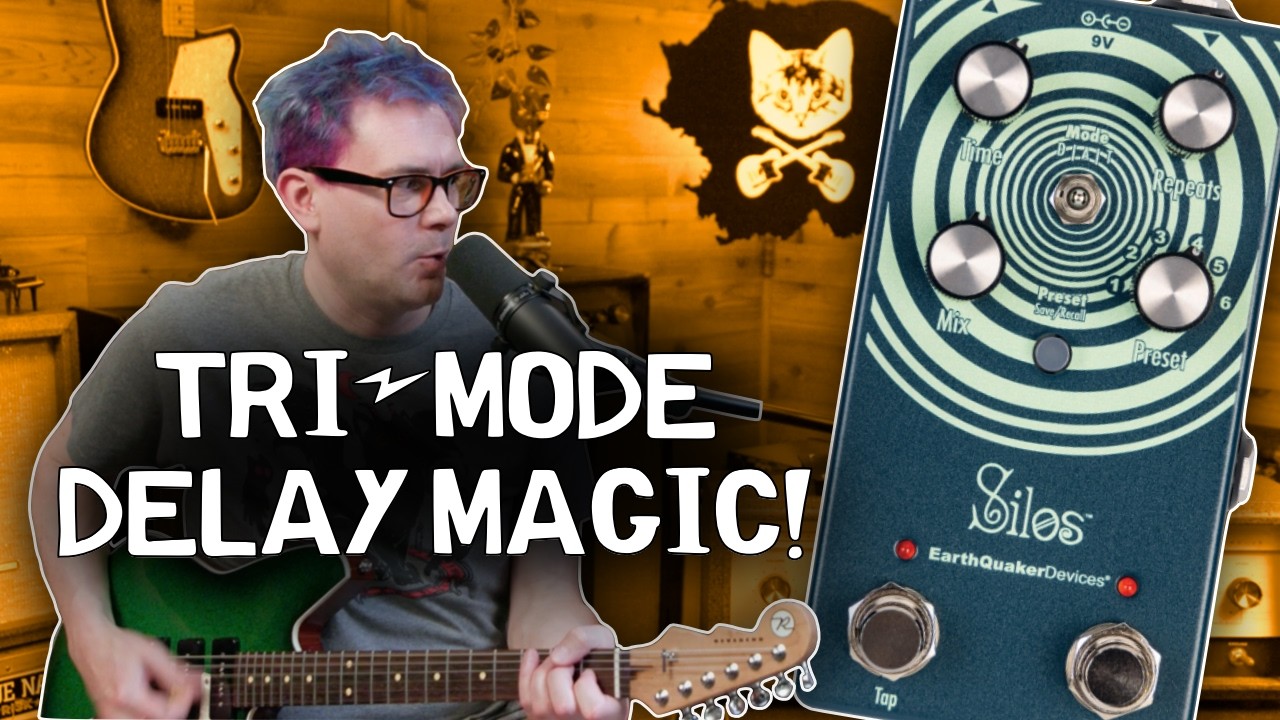 La Silos, dernière création de la marque américaine Earthquaker Devices installée dans l’Ohio, rassemble trois algorithmes de delay au sein du même boîtier. L’idée vient de Jamie Stillman, patron de la marque, qui souhaitait réunir ses trois pédales de delay favorites dans le même châssis. La Silos intègre donc les algorithmes Digital, Analog et Tape ; ils sont labellisés D, A et T sur la pédale. Un petit switch à trois positions permet de basculer entre ces trois saveurs différentes.