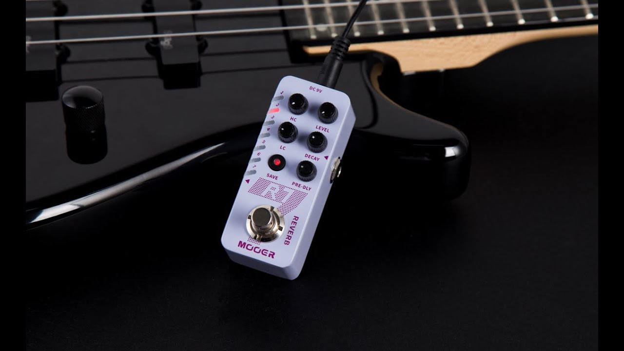 La Mooer R7 propose 7 types de reverbs dans un format mini. On retrouve les grands classiques Room, Hall, Plate, Spring... avec des contrôles simples et essentiels à un effet de reverb, mais aussi deux réglages Hi cut et Low cut pour ajuster la tone.