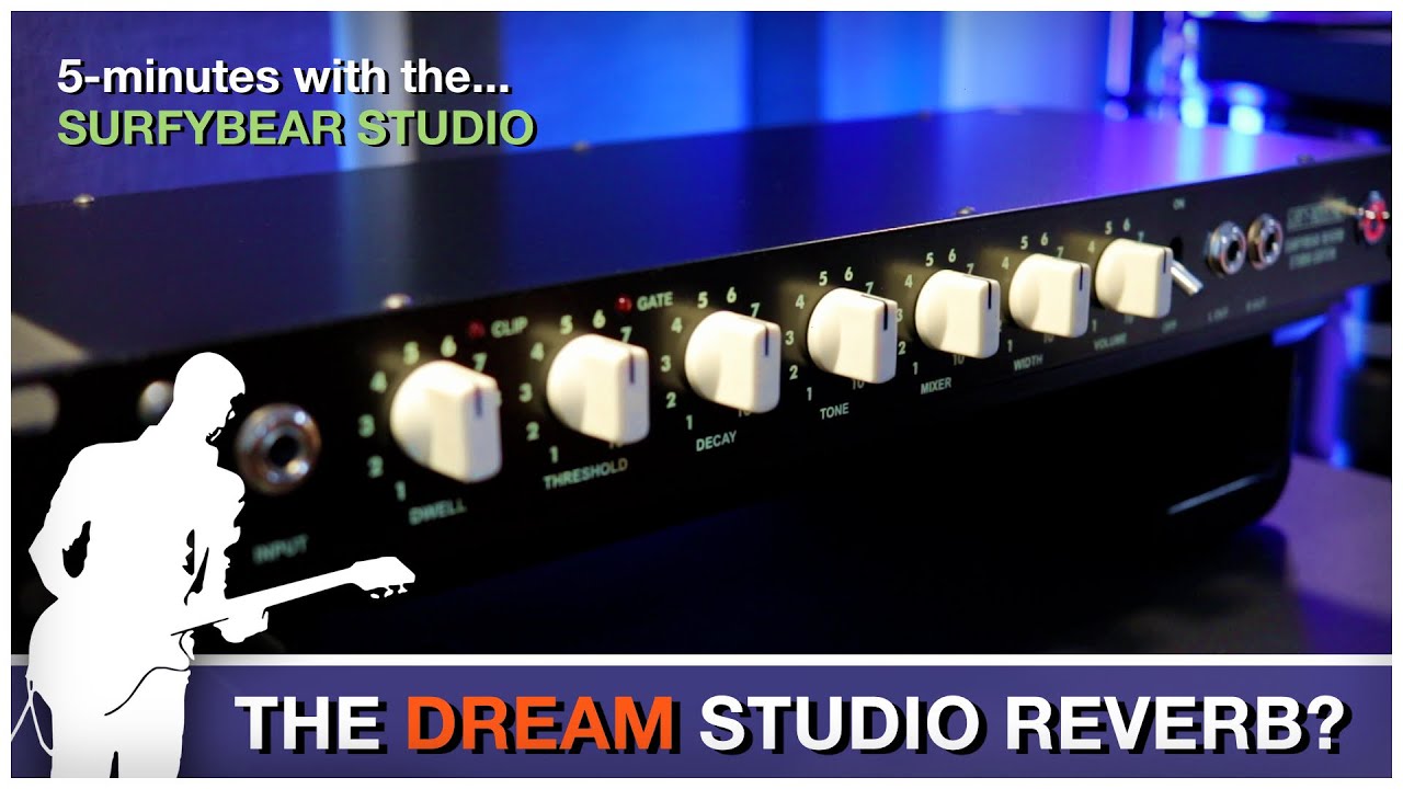 La SurfyBear Studio est dédiée à une utilisation professionnelle en studio, pour le mixage et l’enregistrement. Elle est toujours inspirée de la reverb à ressorts Fender mais dispose de fonctions très modernes comme la gestion des niveaux lignes. Cette version Studio profite de davantage de réglages que les versions Compact et Metal. On retrouve les potards Dwell, Decay, Mixer et Volume que nous connaissons déjà. Ils sont rejoints ici par les réglages Tone, Width et Threshold. Le réglage Tone permet d’ajuster la couleur de la réverbe. Avec le potard Width, on ajuste la largeur d’une fausse stéréo. Enfin, le réglage Threshold est relié à un noise gate qui permet d’ajuster avec précision le Decay de la réverbe. C’est le noise gate qui détermine la longueur du Decay ce qui est très malin.