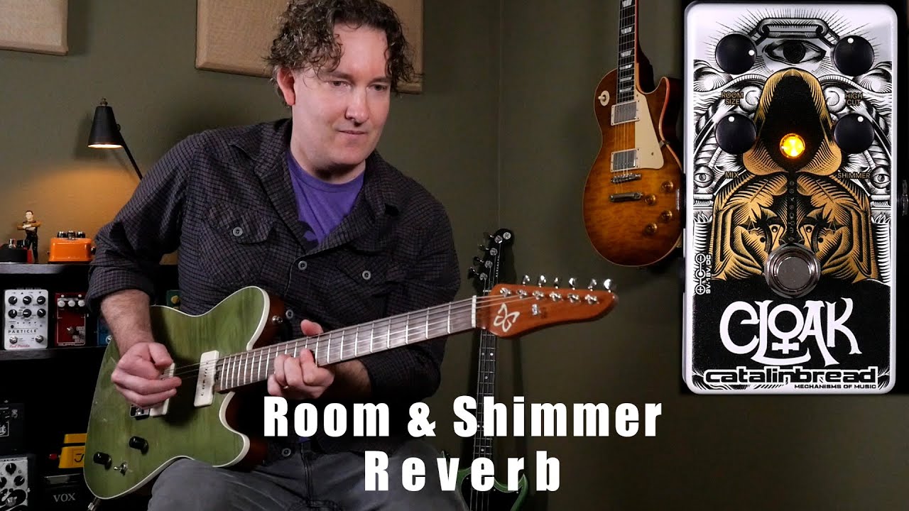 La Catalinbread Cloak, le nouveau design de la marque de Portland, est une reverb shimmer simple à régler, ce qui d’entrée la distingue favorablement par rapport à la plupart de ses concurrentes qui exigent d’avoir fait dix ans d’étude pour trouver un bon son. Ici, quatre boutons suffisent pour configurer le Mix (entre son d’origine et son traité), la taille de la pièce, le taux de shimmer et le filtre passe-bas intégré. Ce dernier permet de calmer les aigus trop brillants ou agressifs, ce qui est particulièrement précieux dans le cas d’une reverb shimmer qui peut vite donner l’impression d’être accompagné par une chorale de hamsters si on ne fait pas attention à ces fréquences.